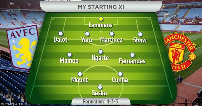 曼联周日做客近期九连胜的阿斯顿维拉,可以肯定的是,鲁本·阿莫林的阵容必将与周一4-4战平伯恩茅斯时有重大变化,因为他将缺少三名当时的首发:姆贝莫、阿马德·迪亚洛和卡塞米罗。